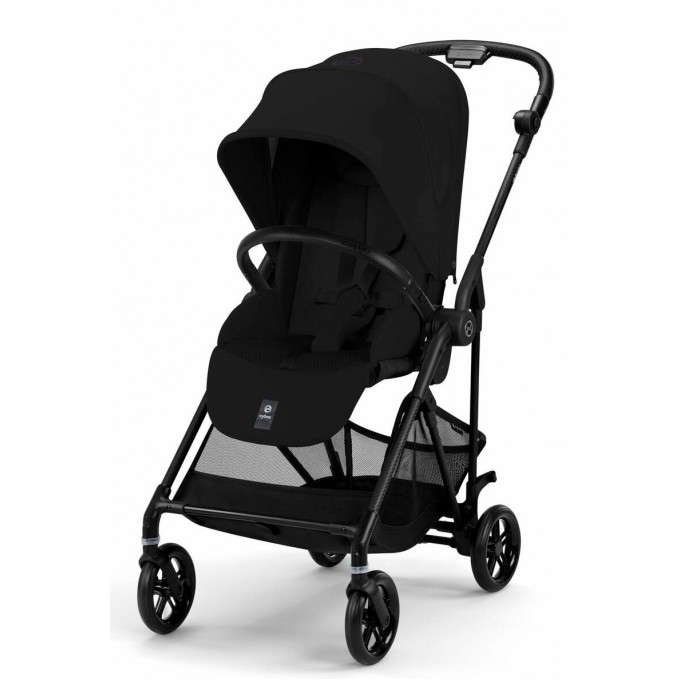 Прогулянкова коляска Cybex Melio Carbon Magic Black комплектується: шасі з колесами, прогулянковий блок з бампером, нижня корзина для покупок.