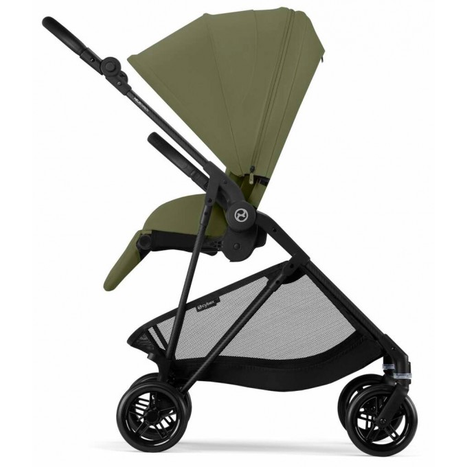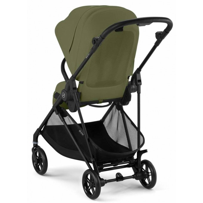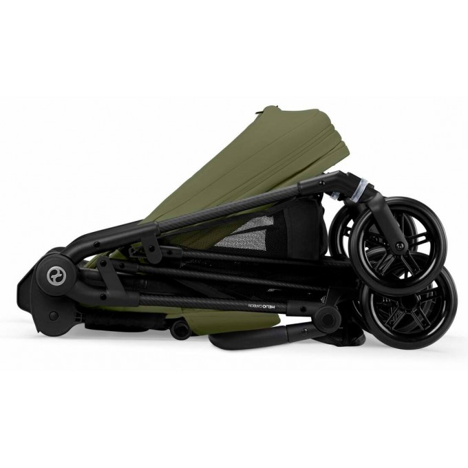 Прогулянкова коляска Cybex Melio Carbon Moss Green комплектується: шасі з колесами, прогулянковий блок з бампером, нижня корзина для покупок.