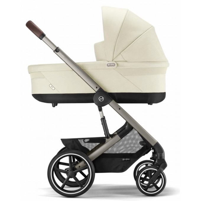 Коляска Cybex Balios S Lux Taupe 2 в 1 комплектується: шасі з колесами, прогулянковий блок з бампером, люлька, нижня корзина для покупок.
