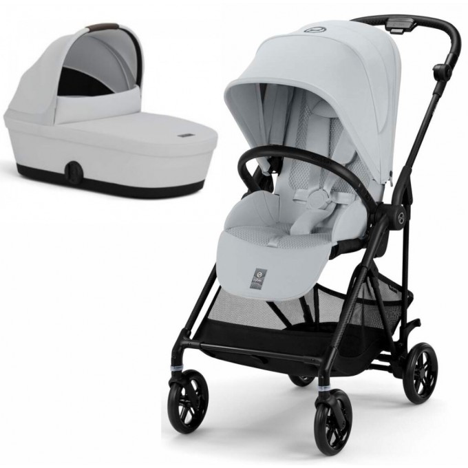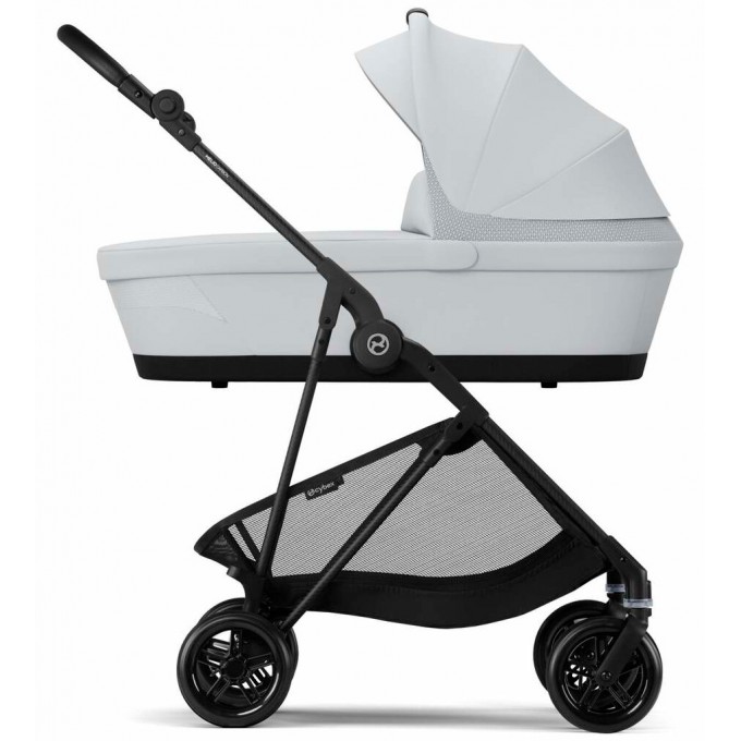 Люлька Cybex Melio має ручку для перенесення, а також вбудовану в капюшон москітну сітку для провітрювання. Всередині люльки м'який, досить високий матрацик, що забезпечує правильне положення дитини. Внутрішня оббивка коляски, знімна, і її можна прати. Люлька в складеному вигляді має компактні розміри і займає мінімум місяця під час зберігання. Капюшон має додатковий сонцезахисний піддашок з рівнем захисту UPF50+.