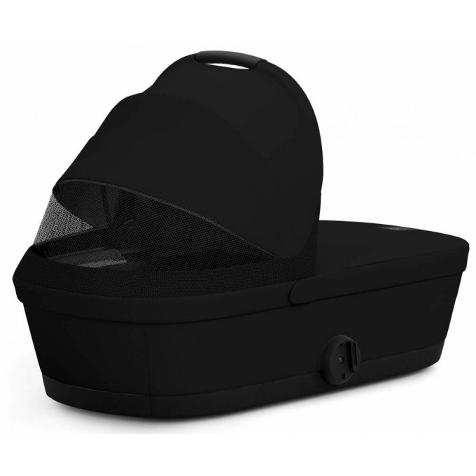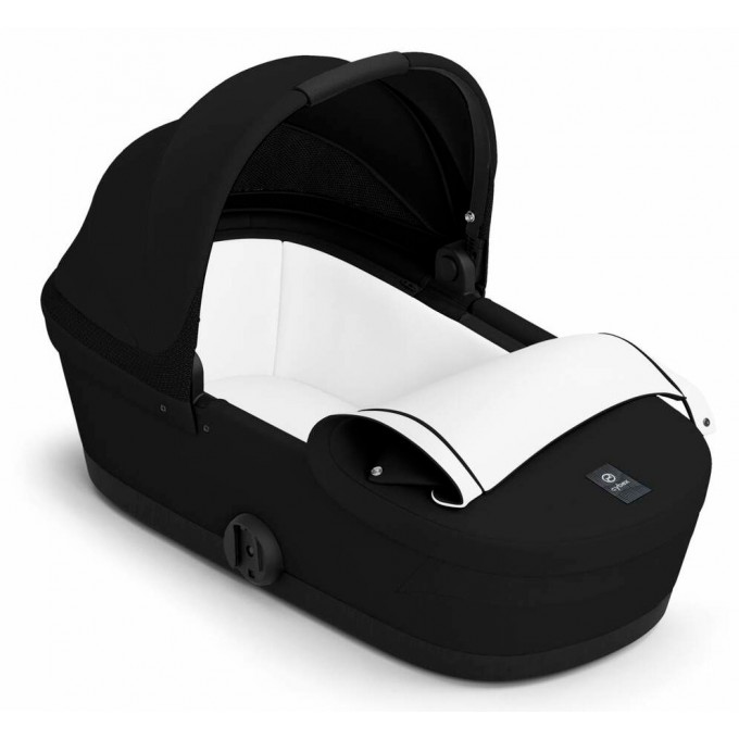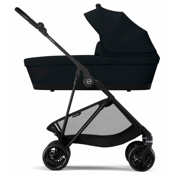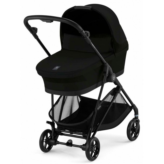 Люлька Cybex Melio має ручку для перенесення, а також вбудовану в капюшон москітну сітку для провітрювання. Всередині люльки м'який, досить високий матрацик, що забезпечує правильне положення дитини. Внутрішня оббивка коляски, знімна, і її можна прати. Люлька в складеному вигляді має компактні розміри і займає мінімум місяця під час зберігання. Капюшон має додатковий сонцезахисний піддашок з рівнем захисту UPF50+.