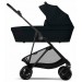 Коляска Cybex Melio 2 в 1 Carbon Magic Black комплектується: шасі з колесами, люлька, прогулянковий блок з бампером, нижня корзина для покупок.